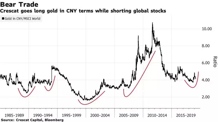 Crescat当前的投资策略是,将四分之三的仓位买入以人民币计价的黄金,做空全球股票。做空的目标主要是MSCI全球指数、个股,以及交易所买卖基金(ETF)。