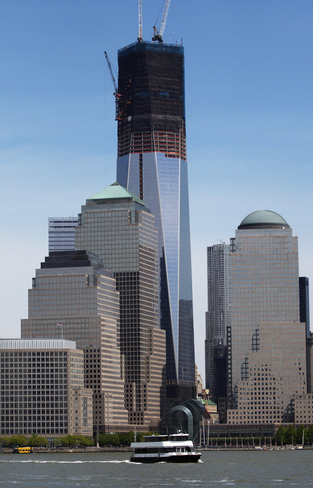 “9·11事件”之后,世界贸易中心开始重建。2006年4月,世贸中心一号楼开始动工,2012年4月,新的世界贸易中心一号楼主体建成,建造高度超过帝国大厦成为纽约最高建筑。2013年5月,世界贸易中心一号楼塔尖安装成功,建筑总高度达到541米,成为西半球最高建筑和世界第四高建筑。