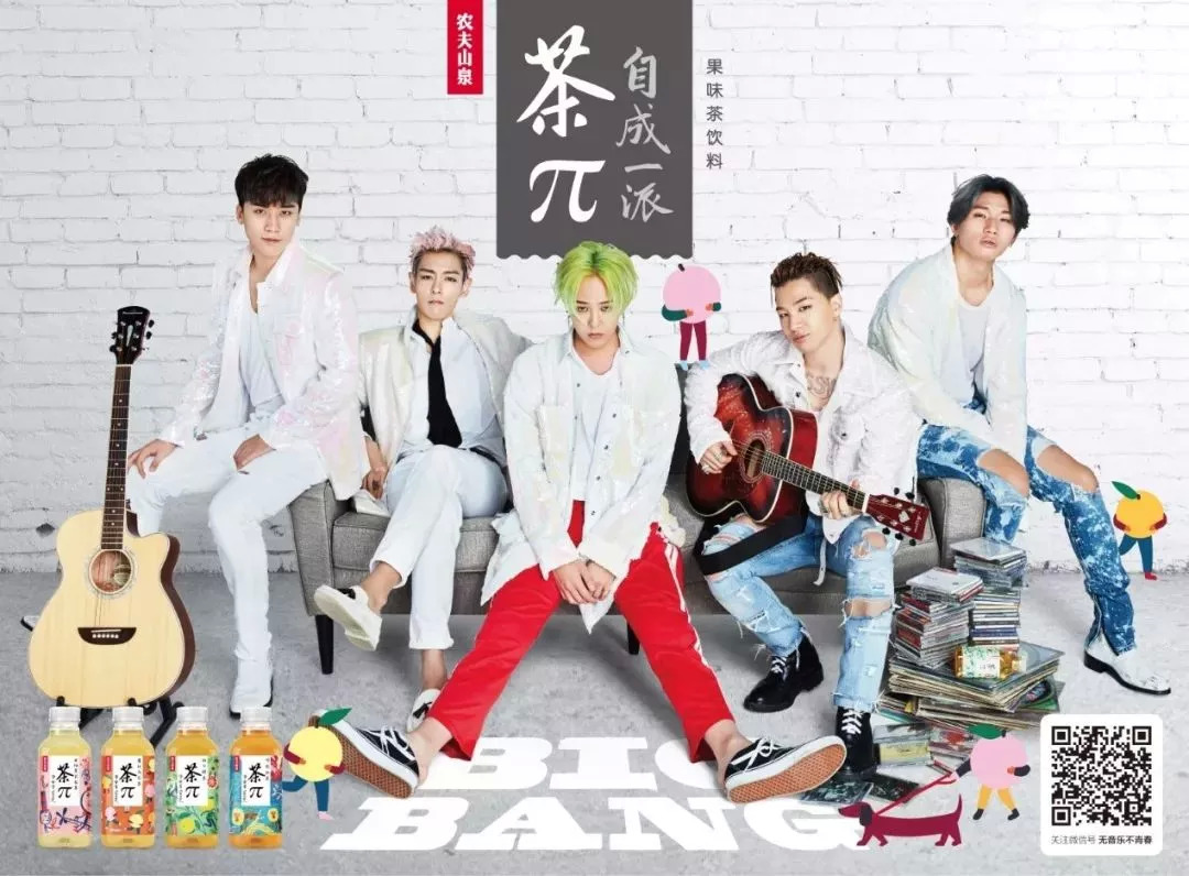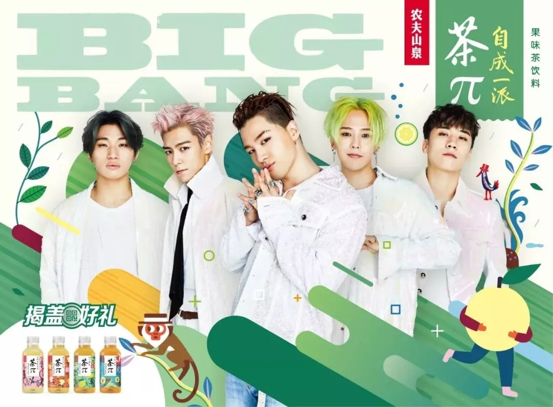 上市不久后就选择了当时人气火爆的BIGBANG作为代言人,直接帮助茶π打开了局面。