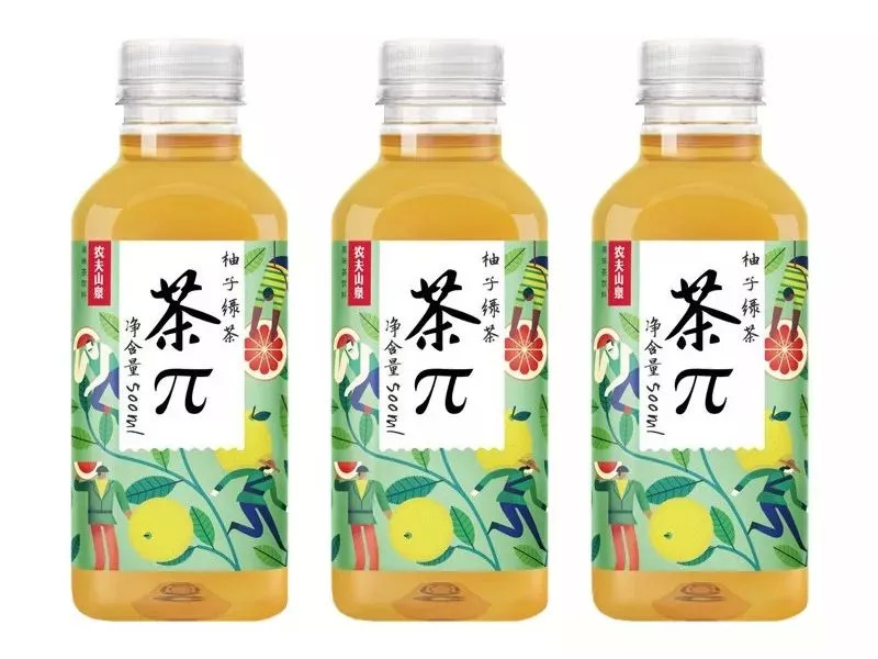 茶π是农夫山泉在2016年推出的果味茶饮料。农夫山泉出品+奇特的产品名+独具一格的包装设计,这些标签使得茶π一经面世就自带话题属性。而其中,又以茶π的包装最受瞩目。一项消费者调查显示,有超过7成的消费者首次购买茶π是被其包装所吸引。