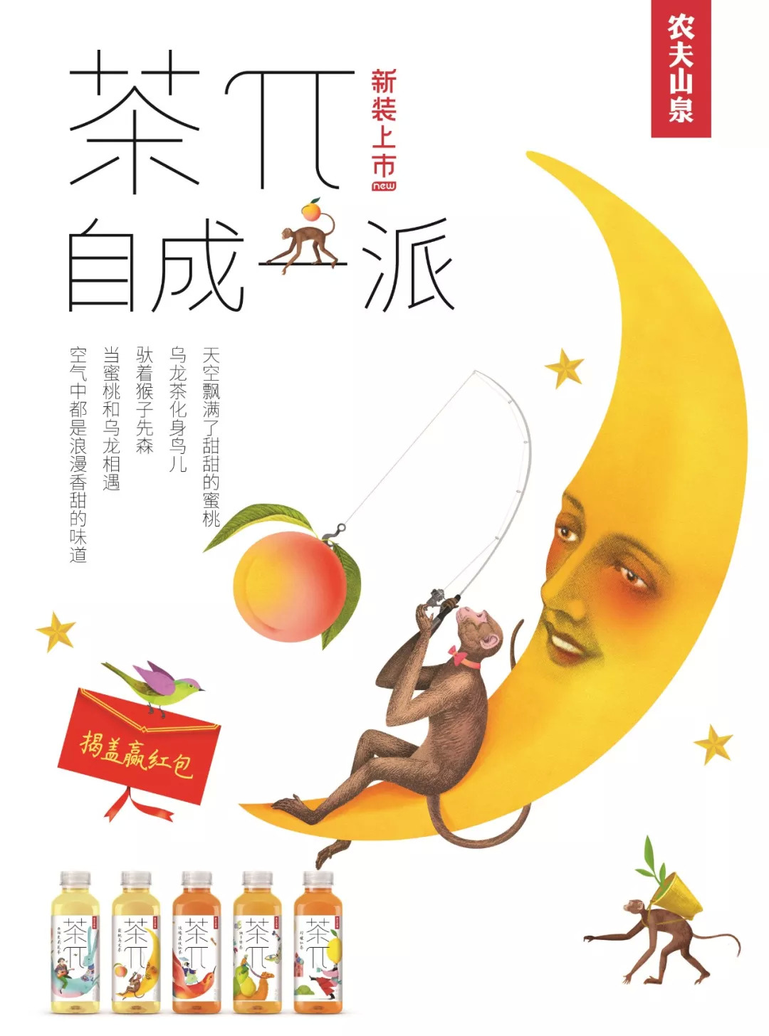 区别于农夫山泉旗下的其他品牌,茶π换新装的频次算是非常高的,我们采访了农夫山泉的高管了解到,原来,茶π的包装策略是基于它在公司产品线中的角色担当。在农夫山泉,茶π被定义为公司产品线中最时尚的一款产品,承担着沟通年轻消费群体的重任。所以它会不断地推陈出新,不断通过包装焕新,持续给用户带来新鲜感。