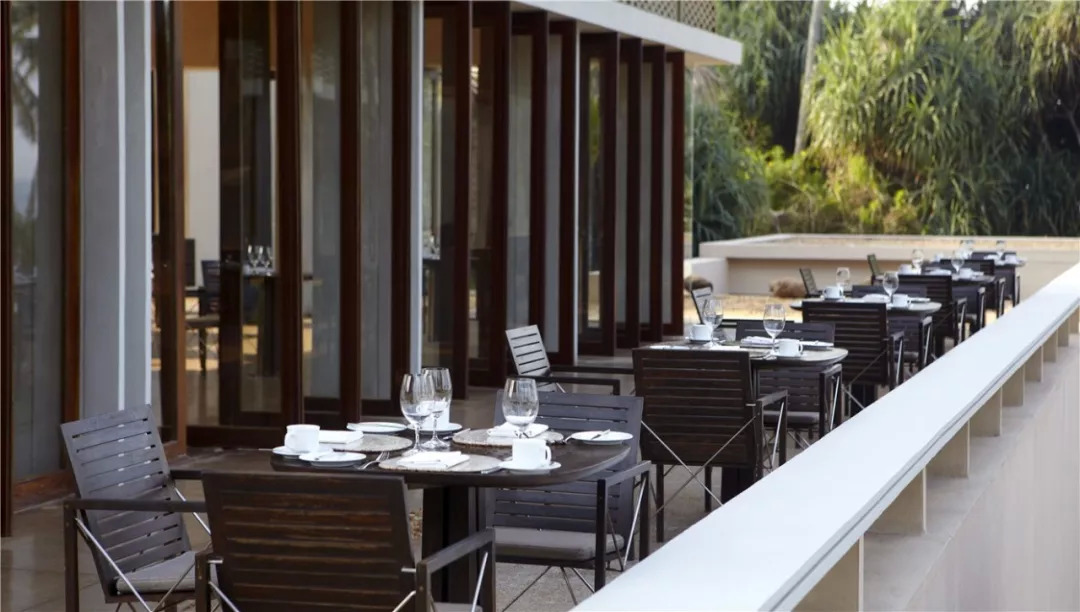 酒店的餐厅俯瞰棕榈树环绕的海湾,设有高架平台和露台,供应当地渔民每天捕捉到的新鲜食材。厨师团队在酒店附近的集市上购入当地种植的咖喱叶、水果、香料等,创作出一道道色彩丰富、营养均衡的菜肴,并且还能根据客人的口味量身定制。