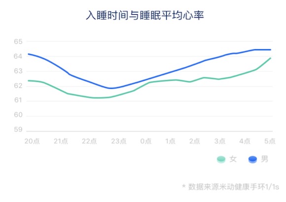 早睡早起心脏好?不熬夜、适度早睡对心脏健康有益,但太早睡则未必。根据米动大数据显示,男性在晚10:30-11:30之间入睡,睡眠平均心率最低;而女性则在晚10:00-11:00左右入睡,睡眠平均心率最低。而10点以前入睡的人群,无论男女心率均处于较高水平,建议结合自身生物钟科学调整入睡时间。