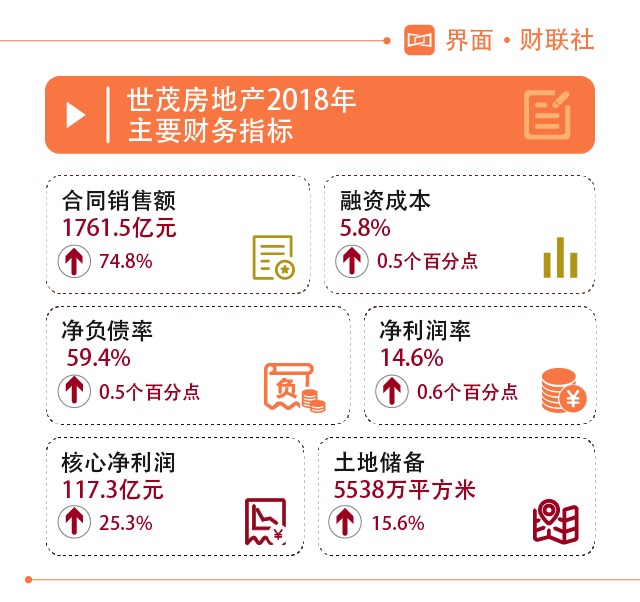 去年世茂狠抓回款,回款额同比大涨70.4%,达到1374亿元,回款率为78%,充实了手中资金。