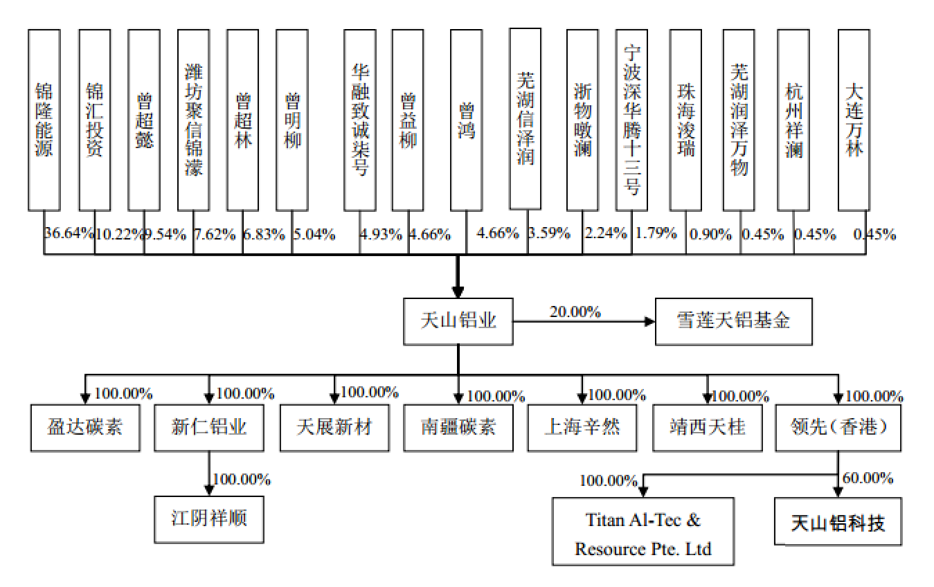 资料显示,天山铝业成立于2010年9月14日,主营业务为原铝、铝深加工产品及材料、预焙阳极、高纯铝、氧化铝的生产和销售。天山铝业已建成年产能120万吨原铝生产线,配套建有6台350MW发电机组和年产能30万吨预焙阳极生产线,在江苏江阴建有年产5万吨铝深加工基地。天山铝业正在广西靖西新建年产250万吨氧化铝生产线、在新疆阿克苏地区阿拉尔市国家级经济开发区新建年产50万吨(一期30万吨)预焙阳极生产线、在新疆石河子新建6万吨高纯铝生产线,截至2018年12月,上述高纯铝生产线已投产1万吨产能。资料称,天山铝业具有较完善的铝产业链一体化优势和较强的能源优势。根据阿拉丁研究报告,以截至2017年12月原铝生产能力排名,天山铝业原铝单厂产能排名全国第二,总产能位列全国前十、新疆第二。