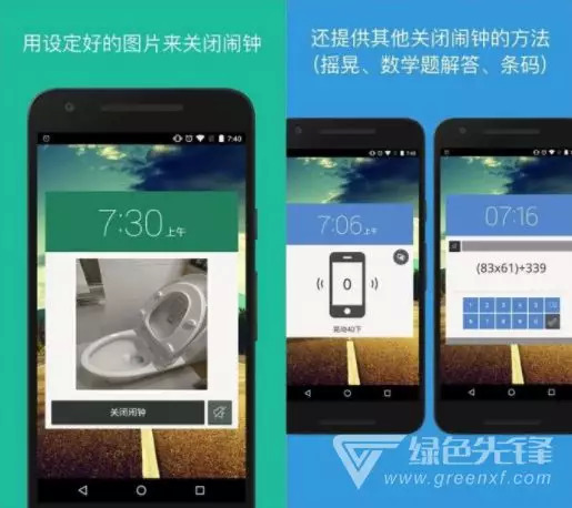 拍照解铃:在设定闹铃时需照一张照片,等到早上闹钟响了的时候,用户必须再照一张和之前一模一样的照片才能让它停下来。