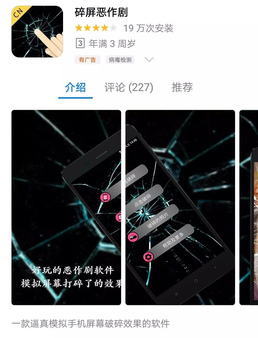 一款逼真模拟手机屏幕破碎的软件,据说这个整蛊很有效。