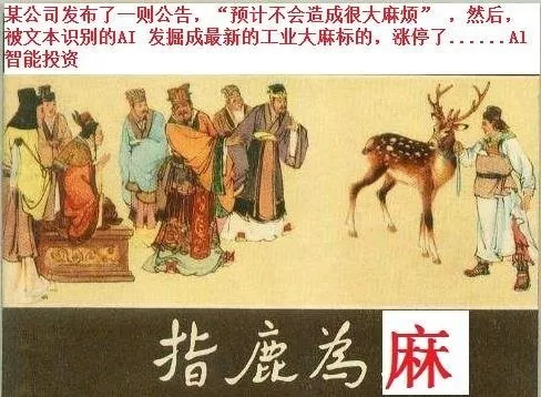 某公司发了一则公告,“预计不会造成很大麻烦”,然后被文本识别的AI发掘成最新的工业大麻标的,股价涨停了。史称,指鹿为“麻”。