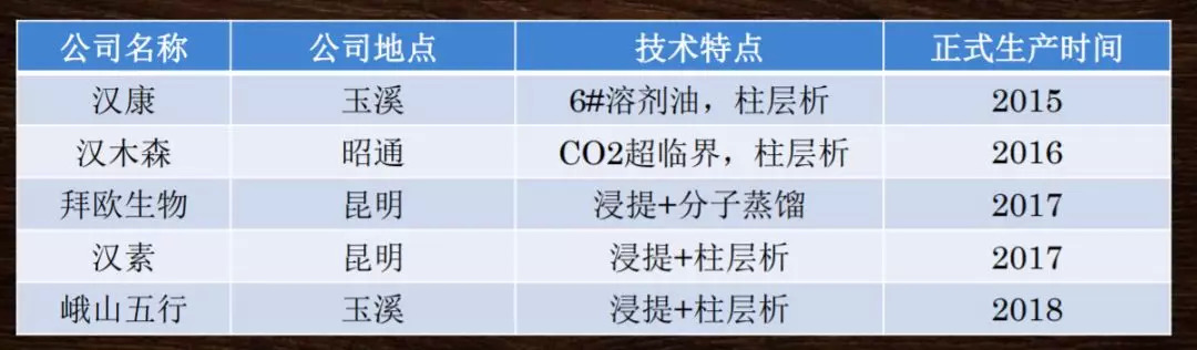 云荣资本的调研数据显示,截至2018年12月底,云南已颁发了45张《云南省工业大麻种植许可证》。已颁发了6张《云南省工业大麻花叶加工牌照》,分别是汉康、汉木森、拜欧生物、汉素、峨山五行以及农科院。2019年6月前还可能颁发2张加工牌照。
