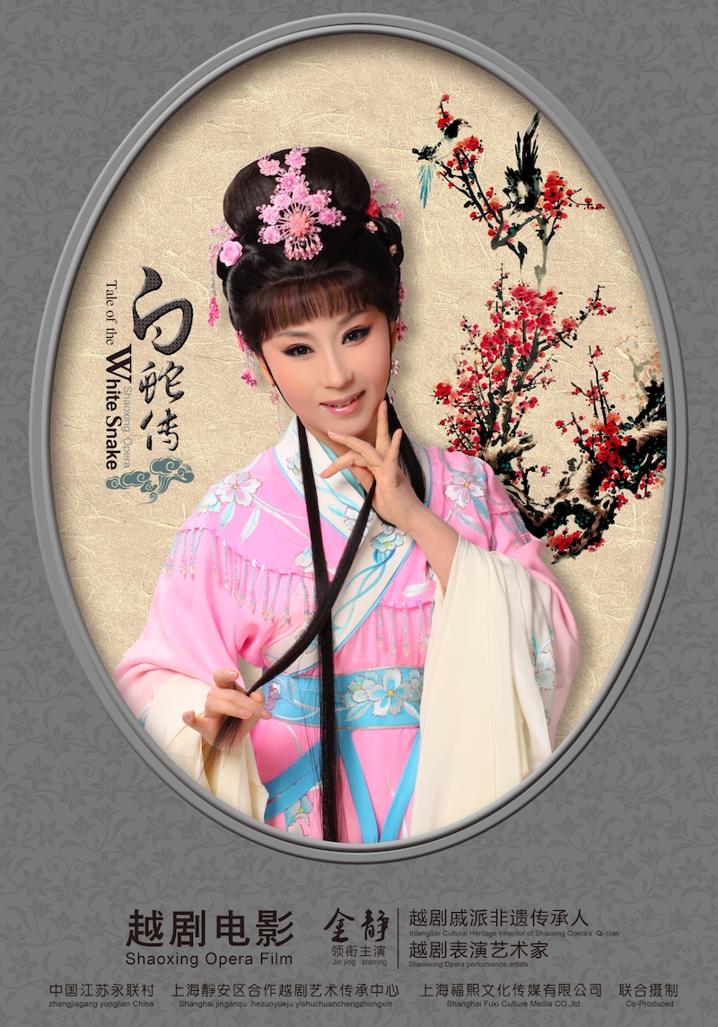 2017版越剧电影《白蛇传》由越剧戚派非遗传承人、越剧表演艺术家金静领衔主演,电影主要讲述,四川峨眉山蛇精白蛇、青蛇厌倦枯燥修行,化作少女白素贞、小青,游抵杭州西湖。书生许仙扫墓迟归,白素贞对许仙顿生爱意。经过小青牵线为媒,二人即刻完婚,夫妻二人婚后在苏州保和堂坐诊行医,僧人法海发现白素贞是蛇精后,用强力拆散这对夫妻对故事。