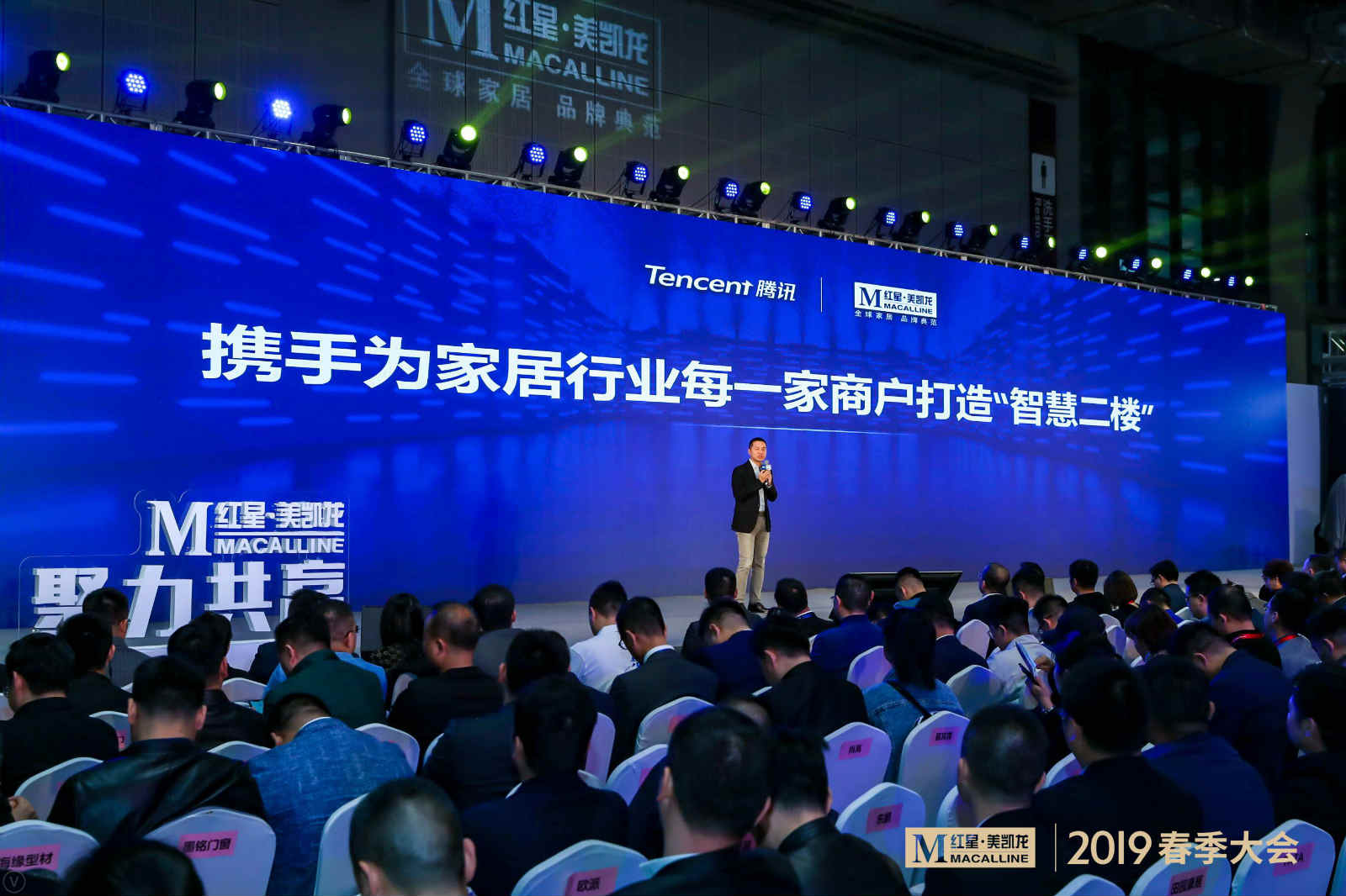 全程3小时的春季大会可谓规模空前。大会不仅几乎惊动了红星美凯龙所有高层及省营发负责人,还有来自芝华仕、志邦、博洛尼等上百位头部家居品牌的站台,最耐人寻味的是,嘉宾阵容中还出现了战略合作者腾讯的身影。