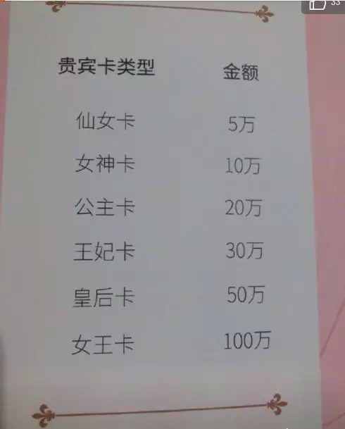 网上还流传着一份疑似该美容院贵宾卡价目表——