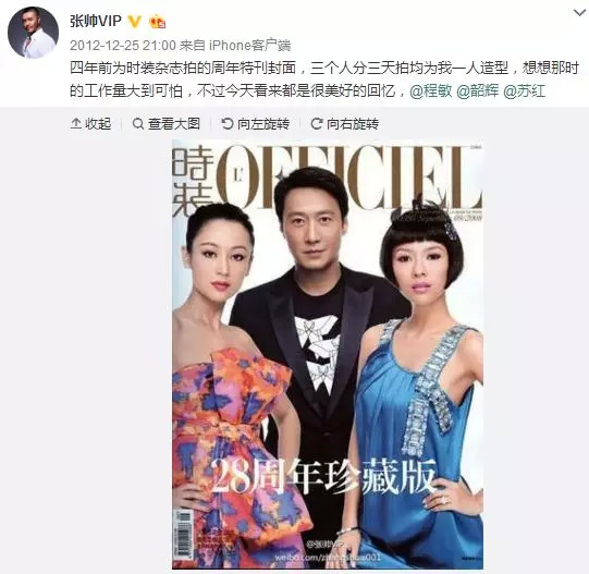 不少当红明星和大咖的杂志封面照、出席重大活动的造型都出自张帅之手。