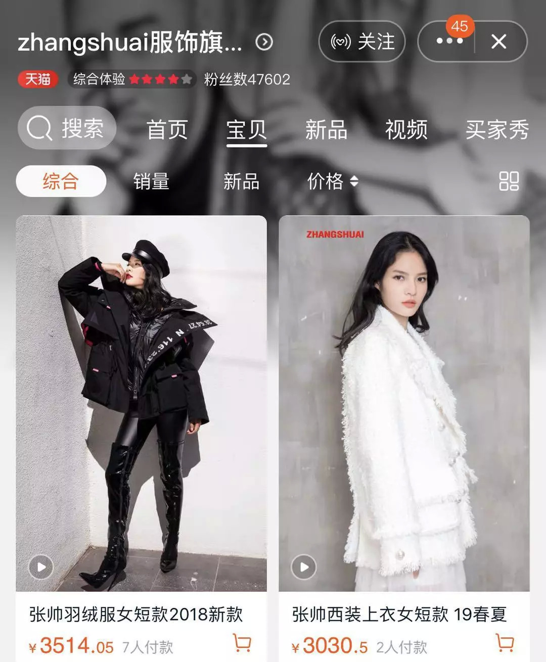 鲜妹搜了下他的天猫旗舰店,衣服价格普遍在两千以上,不过这个销量有点小感人。
