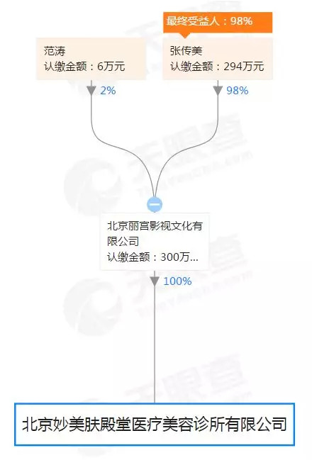 据鲜妹了解,那家美容院所属公司全称为北京妙美肤殿堂医疗美容诊所有限公司,原名北京爱美神医疗美容诊所有限公司。今年3月份以前,范冰冰的妈妈张传美是公司的法人代表和执行董事。