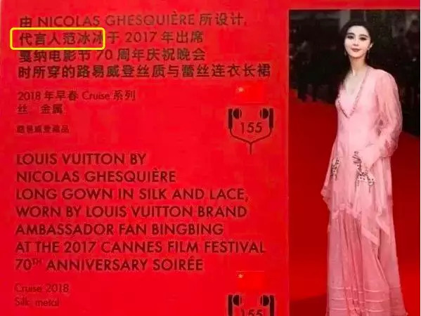 范爷出事,众多品牌和她撇清关系的时候,LV仍然在去年11月上海的展览上展出了她在戛纳电影节晚会上所穿的礼服,并保留着范冰冰“代言人”的title。