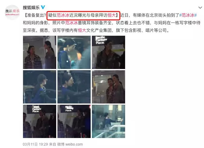 之后没几天,又有媒体拍到范冰冰和母亲一同拜访了恒大影视,并且妆容精致,状态看上去也不错。