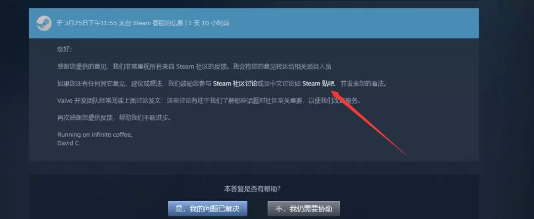 3月27日上午,Steam贴吧发表置顶讨论表示,V社官方已正式指定Steam贴吧为Steam中文讨论社区。该消息的确切来源其实是Steam平台客服的一封回函,其中鼓励玩家在“Steam社区讨论或是中文讨论如Steam贴吧”发表意见,并且表示“Valve开发团队经常阅读上面讨论发文”。