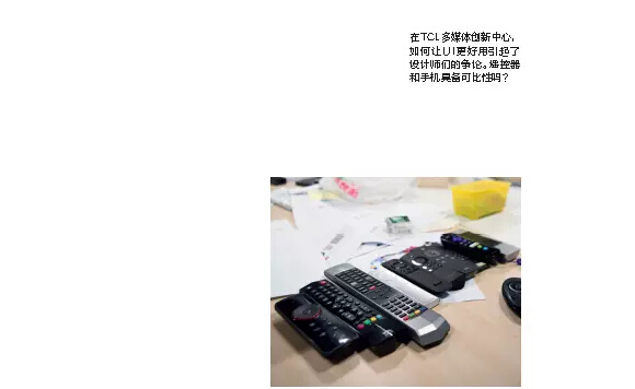 TCL多媒体创新中心的气氛有点像创业公司,墙面上的涂鸦,地上随处摆放的样品,建在室外的阳光房会议室,完全不是家电企业惯有路数。设计部门开会讨论UI时,一群人站在白板前,为某级菜单要隐藏到只有两个还是三个功能键争论许久,看不出谁是领导。