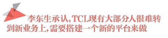 任何转型归根到底都是人的转变,可人都有惯性。李东生承认,TCL现有大部分人很难转到新业务上,需要搭建一个新的平台来做。这个平台可以是内部组织,可以是合资公司,也可以由创投部门直接投资新的项目。