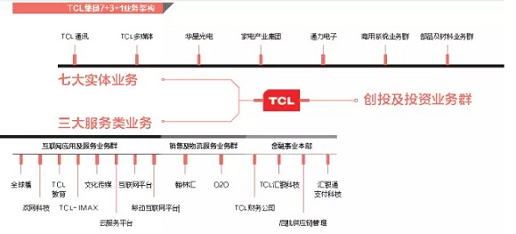 2014年,李东生把集团架构从5+5重组为7+3+1,TCL多媒体、TCL通讯、华星光电等做产品的5家子公司加上商用、部品两大业务群,互联网应用服务、销售及物流、金融事业本部并列,创投和投资作为独立板块直属TCL集团。庞大架构之下,TCL的业务已经无所不包,但是在外界看来,除了创投有点想象空间,其它业务都是新瓶装旧酒。