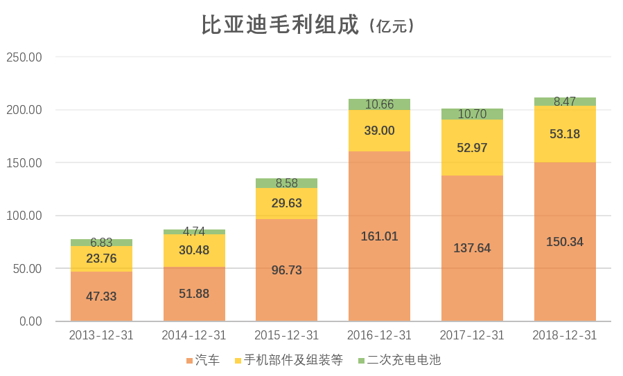 虽然毛利率下降,但是整体收入的增长让比亚迪的汽车业务的毛利贡献从137亿元增长至150亿元。