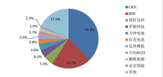 比亚迪以及宁德时代的产品分别主攻这两个方向。比亚迪电池的长处在于磷酸铁锂电池,比亚迪是最早进行磷酸铁锂动力电池研发的车企之一。2015年前后,比亚迪不仅为自己生产的新能源乘用车与客车配套磷酸铁锂电池,还为其他的客车企业供应电池。借着新能源客车在国内先行推广、补贴额度巨大的特点,外加自身体量不小的乘用车业务,比亚迪当上了行业第一。