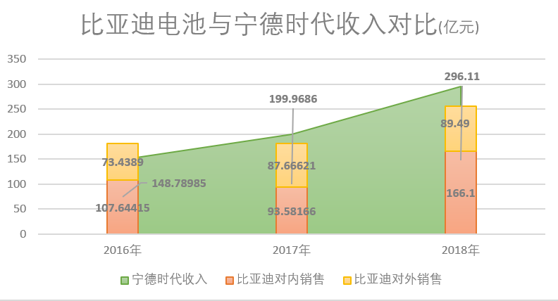 宁德时代尚未公布年报。但按照业绩预告中296亿元的收入,比亚迪与宁德时代可谓是旗鼓相当。当然,这背后比亚迪对内销售功不可没。