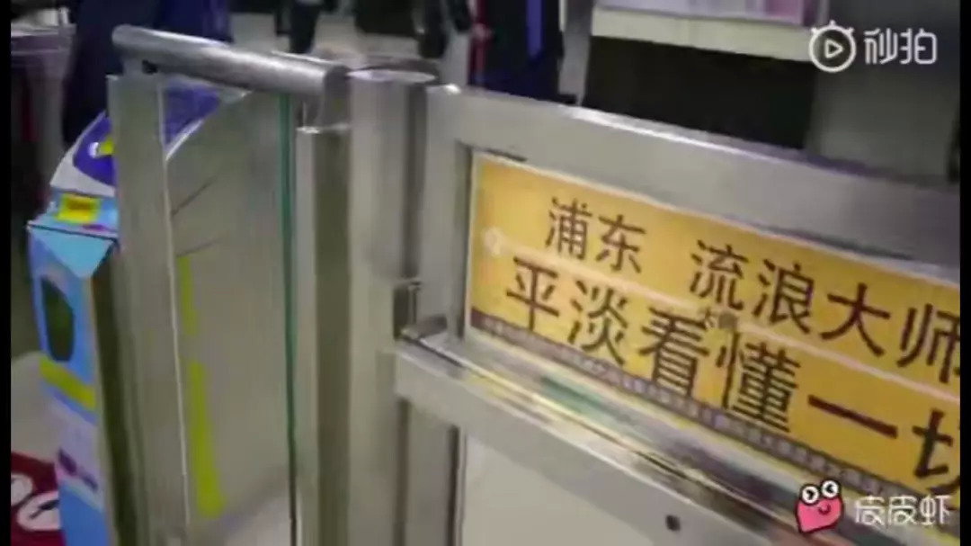 微博流传的视频中,上海一个地铁站中甚至打出了“流浪大师”讲座的广告。