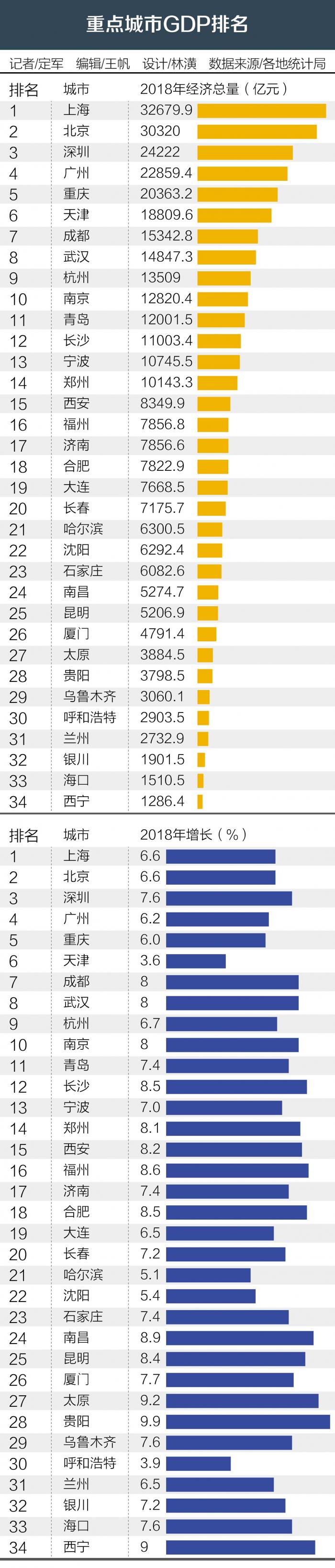 根据各地统计以及相关部门公布的数据,2018年各城市经济总量排名以及经济增速排名出现了较大变化。