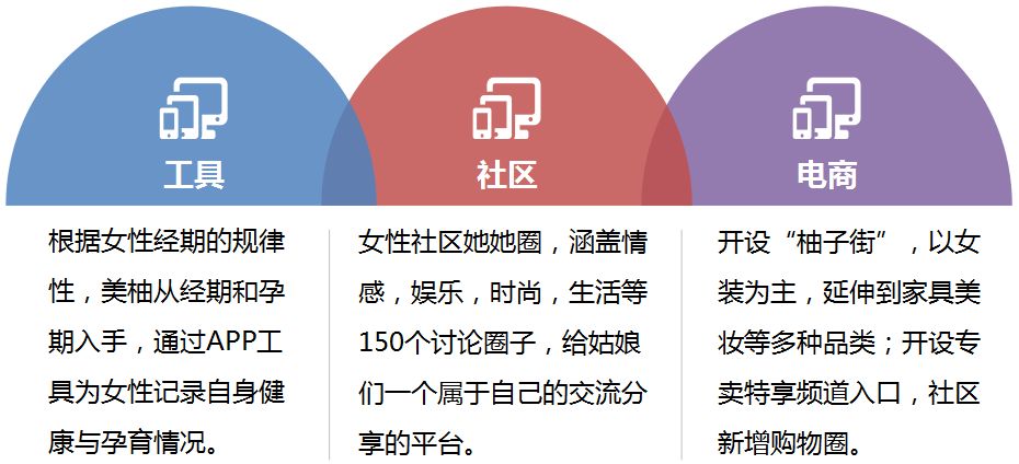 国内互联网医疗健康工具助手模式发展以美柚为代表。美柚APP是目前国内女性垂直领域首个过一亿用户的超级健康工具助手产品,通过“工具”+“社区”+“电商”打造商业闭环,以经期管理为主,同时提供备孕、怀孕、辣妈资讯的应用,覆盖人群20-39岁之间,提供包括经期管理、孕期服务、社区交流、电商购物等服务,满足女性用户的生理安全感、社交、求知、归属感的需求。