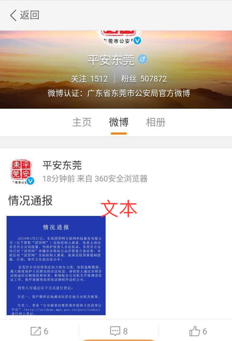 3月27日,据@平安东莞官方微博消息,东莞团贷网互联网科技服务有限公司(以下简称“团贷网”)实际控制人唐某、张某主动向东莞市公安局投案。为保护投资人合法权益,东莞市公安局已对“团贷网”涉嫌非法吸收公众存款案立案侦査,并依法对“团贷网”实际控制人唐某、张某采取刑事强制措施。目前,案件正在依法侦办中。