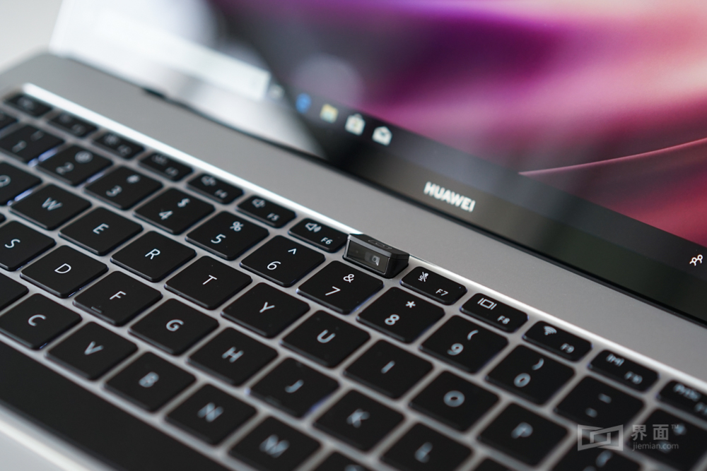 这位华为消费者BG平板和PC产品线总裁指的是业界第一款全面屏笔记本——HUAWEI Matebook X Pro,13.9英寸屏幕,超窄边框,其屏占比达到了91%。为了给整块屏幕让路,华为将前置摄像头挪到了键盘F6和F7中间,平时看起来像按键,只有用的时候才弹出来。
