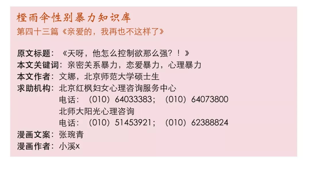 故事中的女孩被男友的控制欲一度折磨到快要窒息,可最开始,她被所谓的“爱”蒙住了双眼,一味忍让、欺骗自己。有的时候,对爱的憧憬会迷惑了沉浸在爱之中的女性,退缩忍让因爱之名的种种控制,甚至暴力。