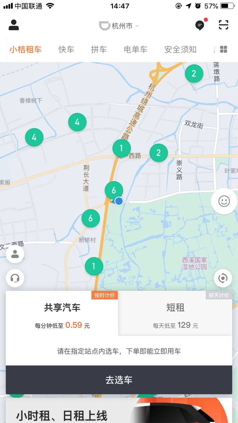 此前,杭州、宁波、西安、淄博和泉州五个城市已上线分时租赁服务,小桔租车升级上线后,将为用户提供使用周期更长、按天计价的短租服务。共享汽车采用随时取还的模式,但短租服务需要提前2小时预约。
