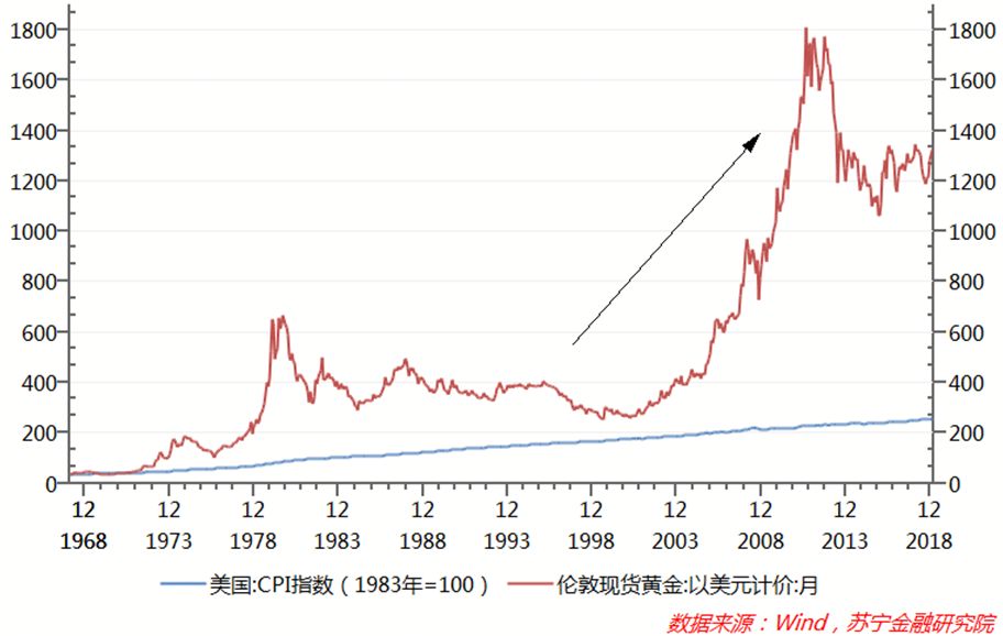 从超长周期来看,半个世纪前的1968年,黄金价格是35美元/盎司,而美国的CPI价格指数为34点,两者的绝对水平基本相当,至2019年2月,黄金价格为1320美元/盎司,涨幅为35.7倍,而同期美国CPI指数仅上涨到253点,涨幅仅为5.4倍(参见下图)。因此,从长周期看,黄金作为普通投资者的一种资产配置工具,完全能够实现跑赢通胀的目标。