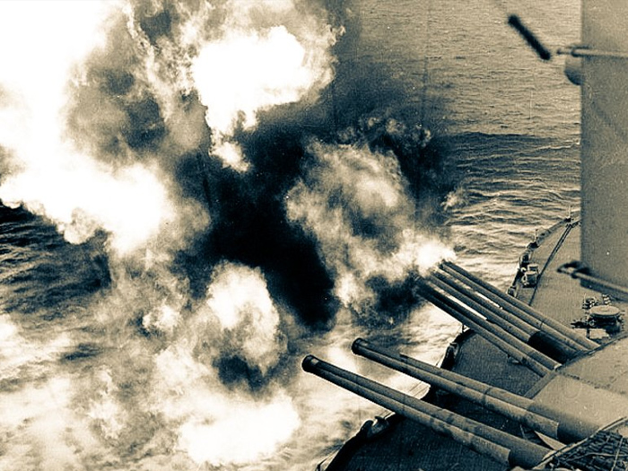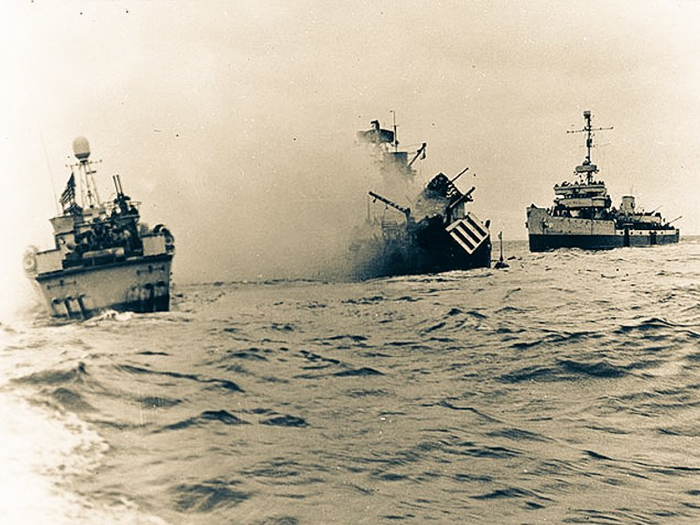 当天下午,德军向一艘同盟军的歼灭舰发射了18枚鱼雷,后者被一分为二。
