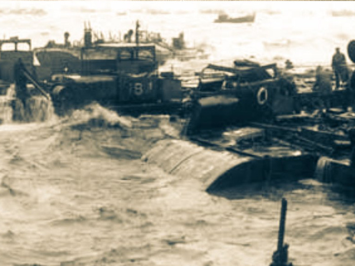 在各滩头逐渐被拿下的同时,用来开路的装甲部队和车辆也开始着陆。