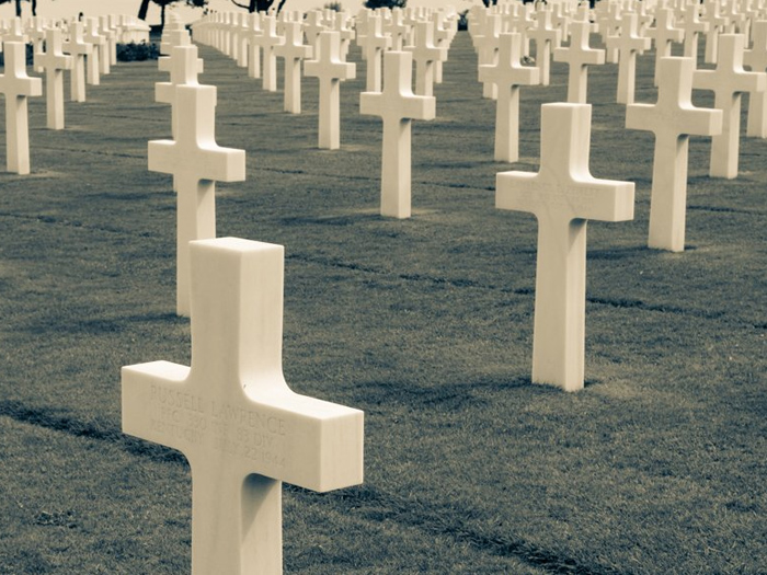 这场战役里,双方伤亡伤及失踪总计有42万人。部分将士的遗体被埋在阵亡的原地。在诺曼底战役原址的公墓里,有9238个白色十字架和149颗戴维之星。