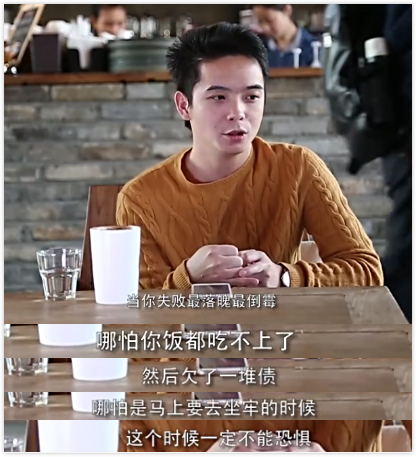 从过往经历来看,唐军有过数次失败,自称是“很痛的失败”,但是失败过后他坚持认为,“当你最失败最落魄最倒霉,哪怕你饭都吃不上了,然后欠了一堆债,哪怕是马上要去坐牢的时候,这个时候一定不能恐惧。”