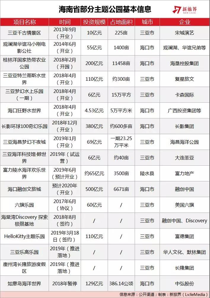 2018年,海南省70个省重点项目全年累计投资666亿元、完成年度计划的107%,三亚亚特兰蒂斯水上乐园等建成投入运营。海南市场总体保持增长态势,包括接待总人次及旅游总收入。那么,海南众多主题公园们,究竟是携手共进,还是几家欢喜几家愁?