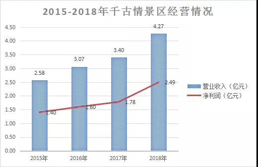 比电影公社早一年开业的三亚千古情景区,以“主题公园+演艺”的业务形式,为宋城演艺全资子公司。宋城演艺年报显示,2015-2018年间,三亚千古情景区业绩保持平稳增长,营收年均增长率约为21.83%,净利润年均增长率也在25.95%左右。2018年全年,三亚千古情景区实现营收4.27亿元,同比增长25.59%;实现净利润2.49亿元,同比增长39.89%。