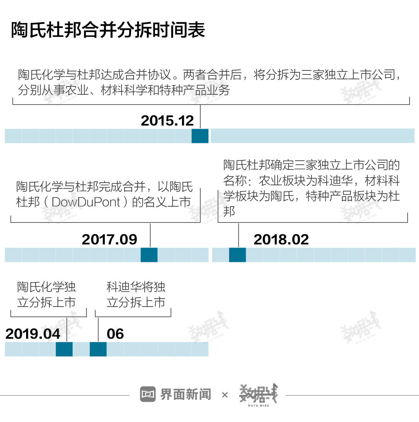 2017年9月,陶氏与杜邦正式完成合并,并以陶氏杜邦(DowDuPont)的名义上市,分拆计划的最终方案也逐一揭晓。