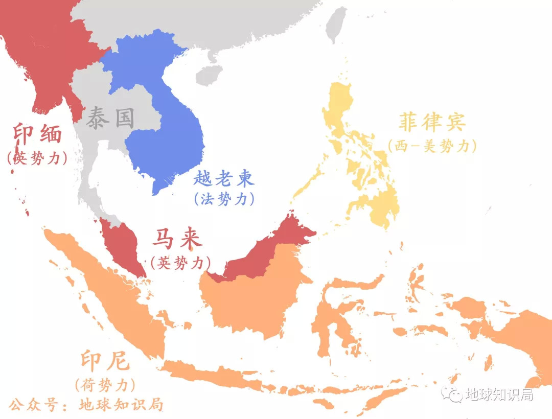 随着印度和中国两个原本控制南亚、东亚局势的大国也趋于衰败甚至直接沦为殖民地,夹在两个大文明区之间的中南半岛自然更不用说。今天分属缅甸、泰国、老挝、柬埔寨、越南五国的中南半岛上,因为两大殖民者的到来,爆发了一场残酷的地缘战争。