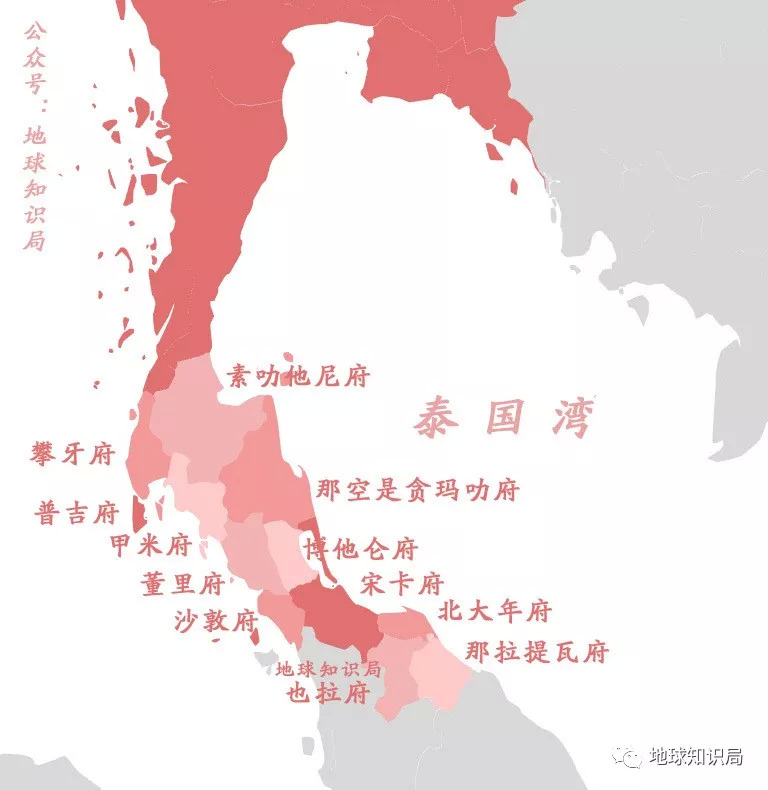 但这一长条领土也并非全是利好,它在地理上毕竟和马来西亚的亲缘性更高,当地的宗教信仰也以伊斯兰教为主,和泰人的佛教信仰一直都格格不入,所以也经常生出事端。尤其是最南端的北大年、那拉提瓦、也拉三府,合称“泰南三府”,是全国最不安定的地方,实在是不推荐去旅游。毕竟当年被泰国和英国联手瓜分的那个国家,就叫做北大年。
