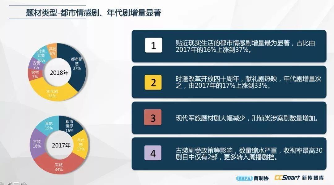 当然,这和2018年的大环境息息相关,一方面站在改革开放40周年、国剧发展60周年的时间节点,献礼剧、现实题材成为备受青睐推崇的题材类型;另一方面,夹杂在行业重组和规则重塑的浪潮中,以及政策环境的不断趋紧,也带来了资本和题材上的洗牌。