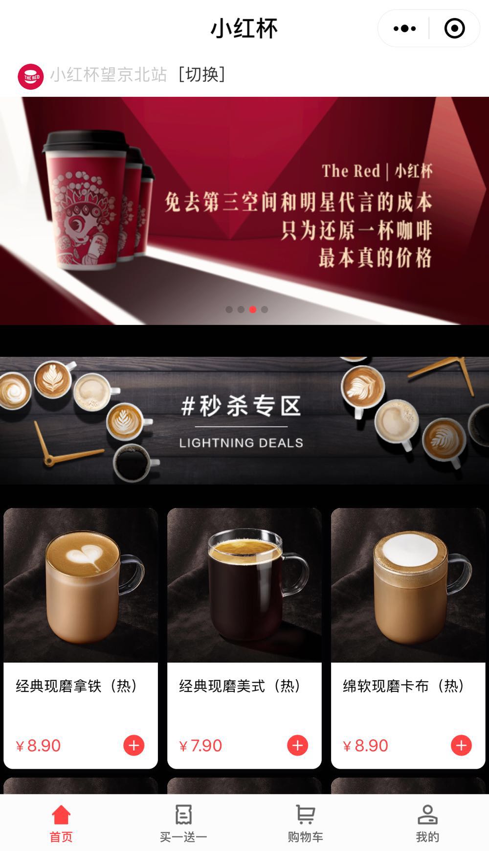 营销上,小红杯主要打出了两个口号,第一个是100%使用上乘阿拉比卡咖啡豆和全进口牛奶,品质远超星巴克;第二个是免去第三空间和明星代言成本,还原咖啡本真价格。在这一段话里,小红杯既碰瓷了星巴克又碰瓷了瑞幸咖啡,可见其野心。