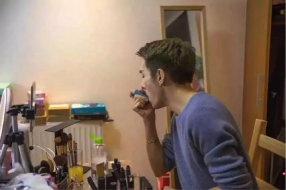 与直播间的火爆相反,这个92年的男孩白皙清瘦,嗓音沙哑,脸上挂着两条舒展的眉毛,在美妆事业面前,他几乎全年无休,有时候要连续讲上七八个小时的话,也只能用喷雾药剂来解决自己的呼吸道不适。