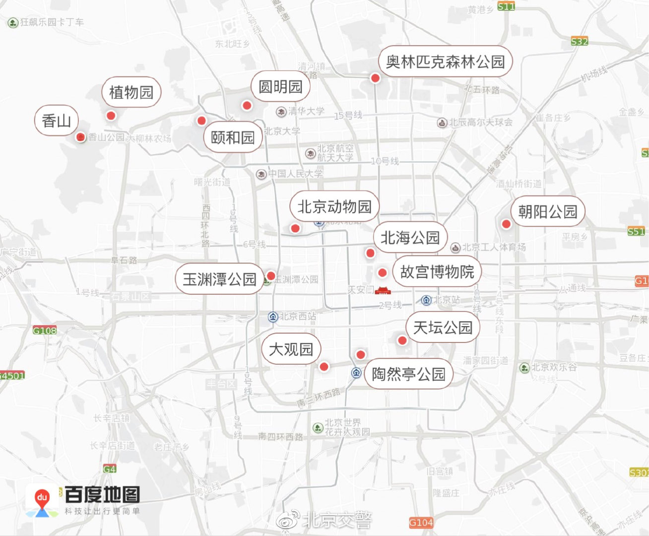 除了祭扫,出游也是清明节小长假的交通吸引因素,部分公园景点已迎来开花季并举办游园登山等主题活动,加上高速公路免费通行,远郊景点、市区公园都将成为出游踏青热点,吸引大量的客流及车流。从往年情况看,玉渊潭、香山、植物园、八达岭长城等周边交通压力将有明显增加。