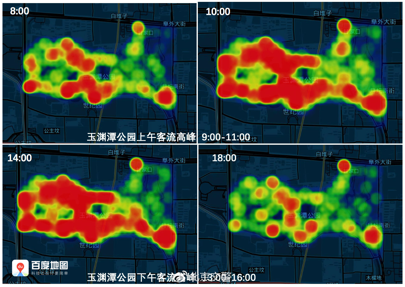 从往年情况看,上午9时—11时、下午13时—16时为玉渊潭的客流高峰,玉渊潭西门的西三环中路南北双向车流集中,特别是辅路停车影响通行的情况较为突出。去往玉渊潭游玩的市民朋友可适当选择走三里河路,从玉渊潭东门进园。